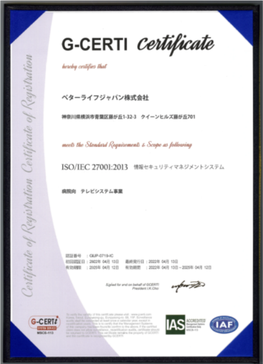 適用規格 : ISO/IEC 27001:2013 情報セキュリティマネジメントシステム